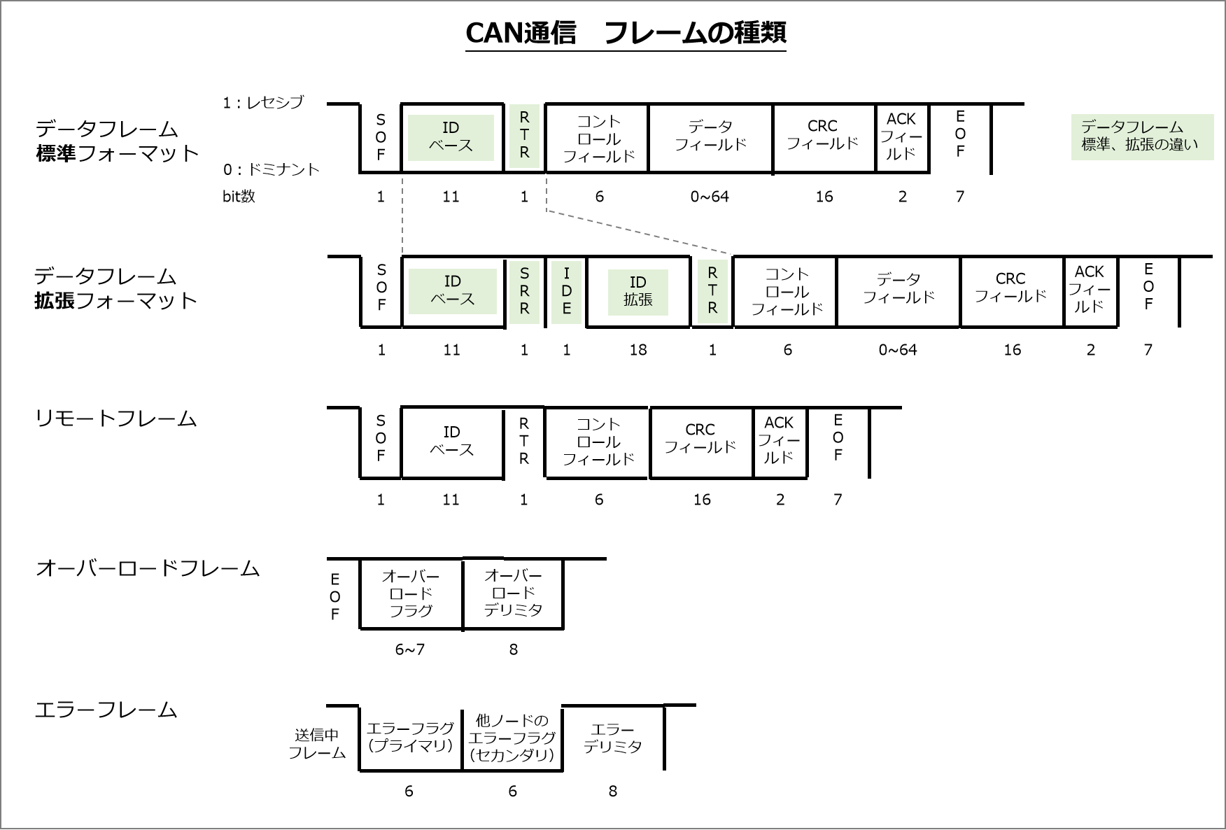 CANはフレームというデータのまとまりで通信を行います。フレームは4種類あります。